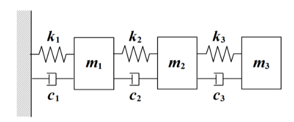 3 自由度弹簧 - 阻尼 - 质量系统结构图如下图所示