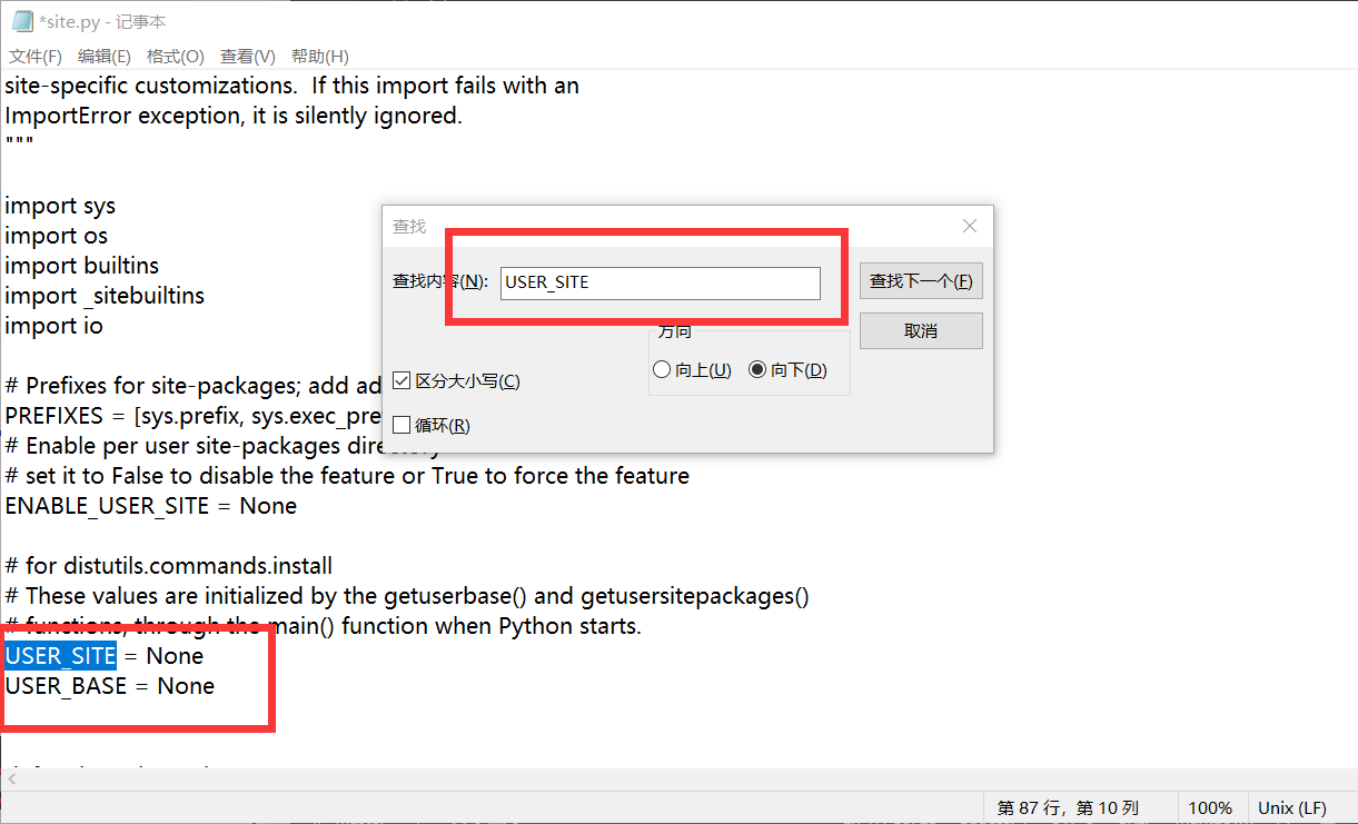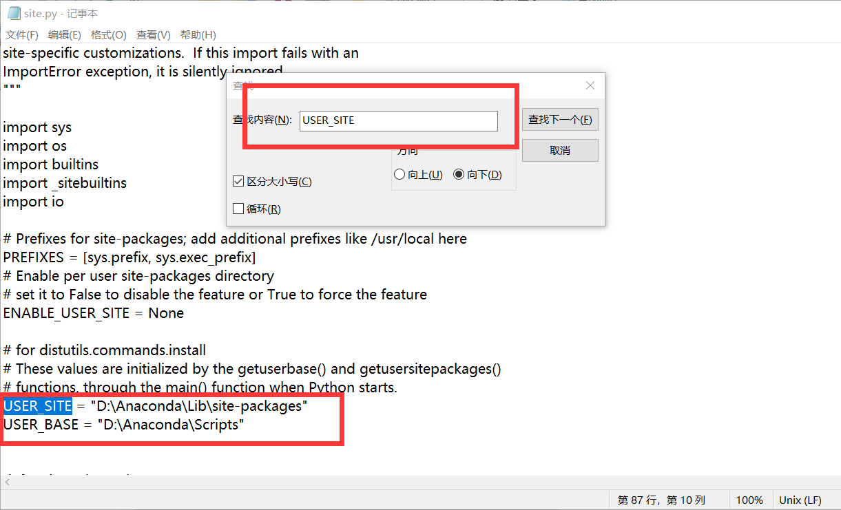 (3)使用记事本打开此文件,找到 USER_SITE 进行修改