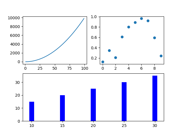 ax4.bar([20, 10, 30, 25, 15], [25, 15, 35, 30, 20], color='b') | |
