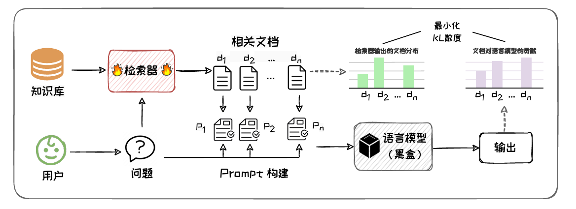 以确保检索器输出的文档相关性分布与文档对语言模型的贡献分布相一致。不同